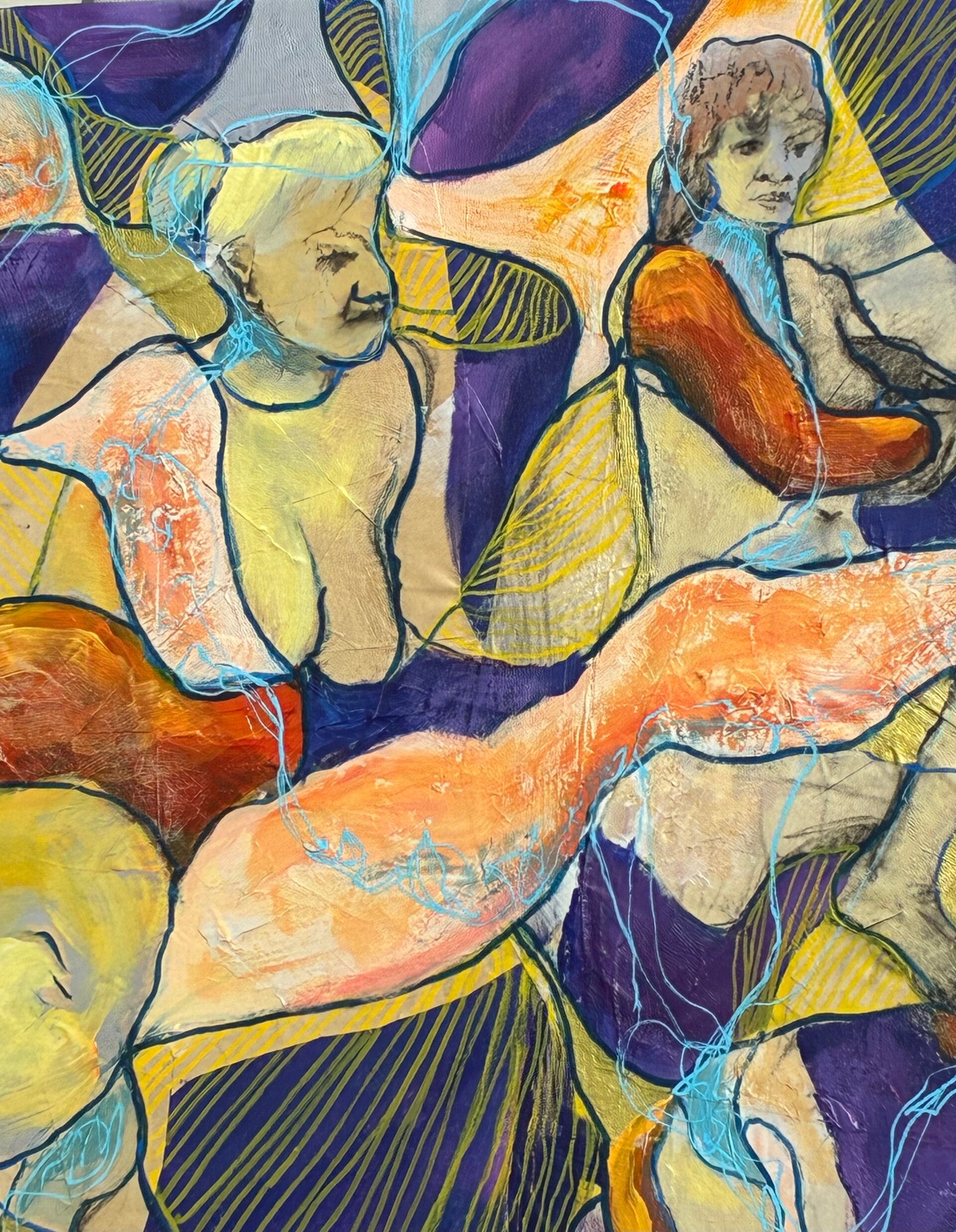 At the end of 2025 and beginning of 2026, I began to try to cull my art collection. 50 years of art is a lot even when many have been given away or lost to mold in a leaky garage. I especially own an inordinate amount of figure drawings from over many years of attending workshops and classes. I first thought I would toss most drawings but then realized it might be fun to experiment with them. This led to a nice new collection of collage-paintings.